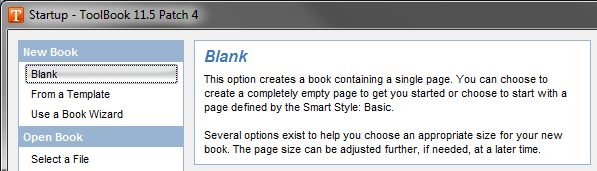 - Verify it says: Startup - ToolBook 11.5 Patch 4